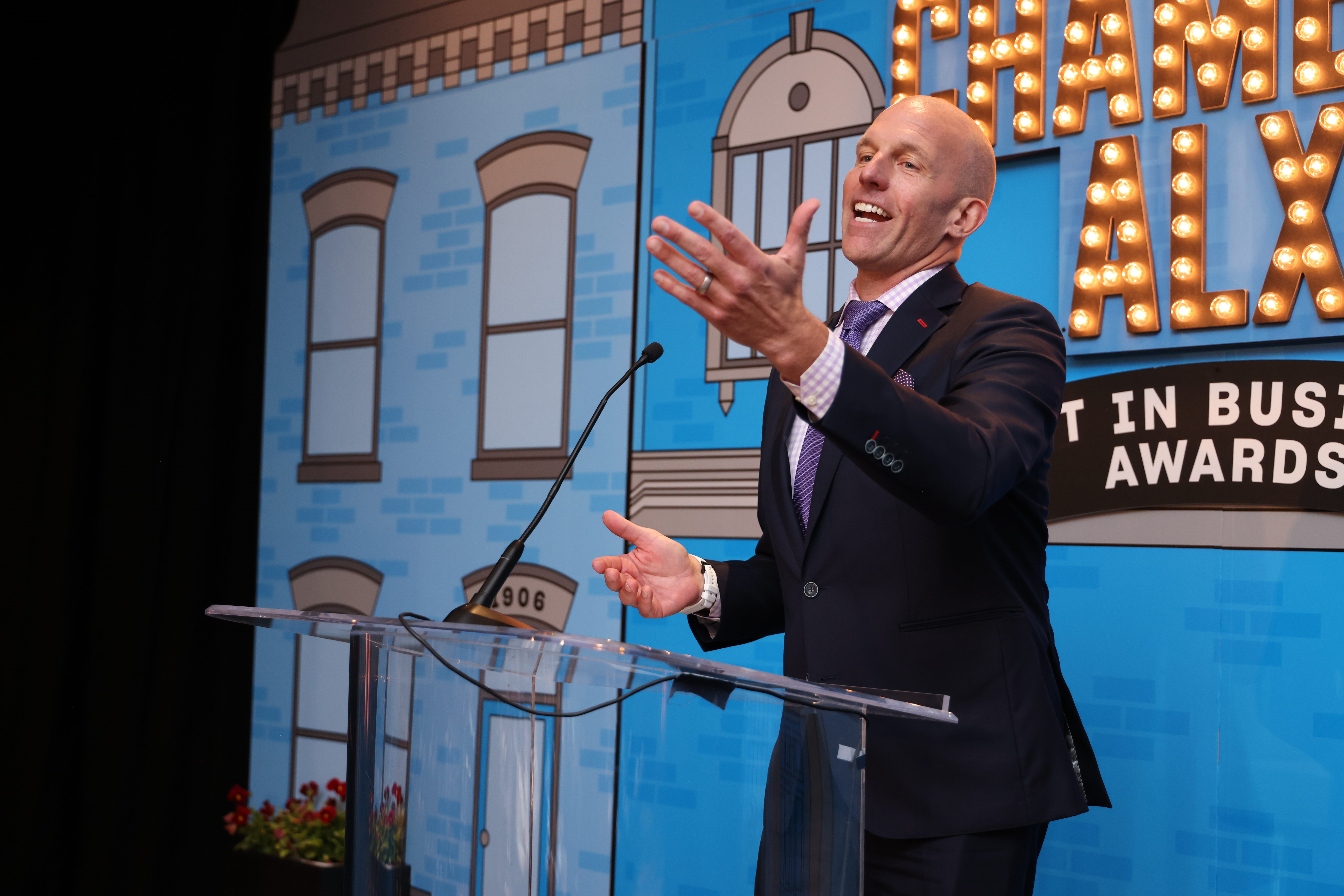 Mike Porterfield introduces Donnie Simpson as the Alexandria Chamber of Commerce Business Leader of the Year.